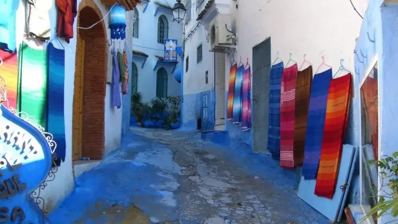 Por último, viaje a la encantadora ciudad de Chefchaouen, a menudo conocida como la "Ciudad Azul" debido a sus impresionantes calles y edificios pintados de azul. Enclavada en las montañas del Rif, Chefchaouen ofrece unas vistas impresionantes y un ambiente tranquilo. Pasee por las estrechas y sinuosas calles, visite las tiendas locales y maravíllese con el vibrante arte callejero.
